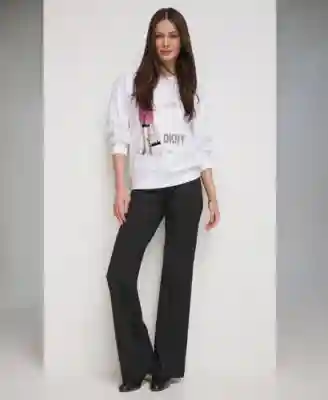 Home DKNY Dkny Womens Printed Front Drop Shoulder Sweatshirt Polished High Waisted Wide Leg Trousers