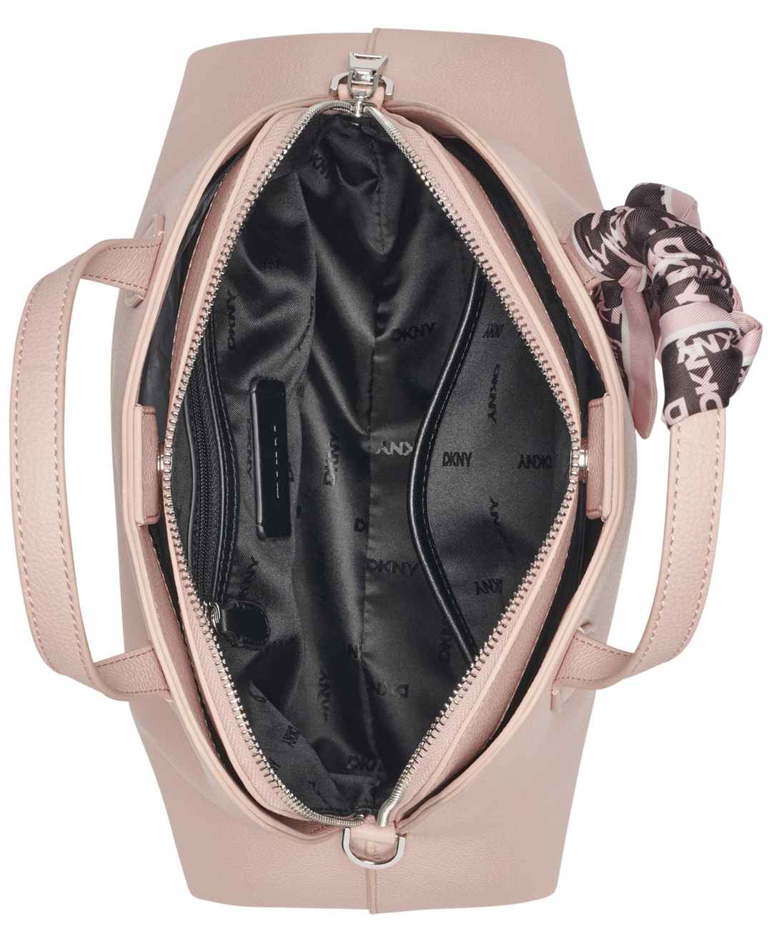 Organized design leads the way in this Dkny small crossbody satchel bag, where top zip and snap closures enhance security while the top handle and exterior pockets add grab-and-go ease. The two-compartment interior keeps essentials neatly arranged and phone-ready.