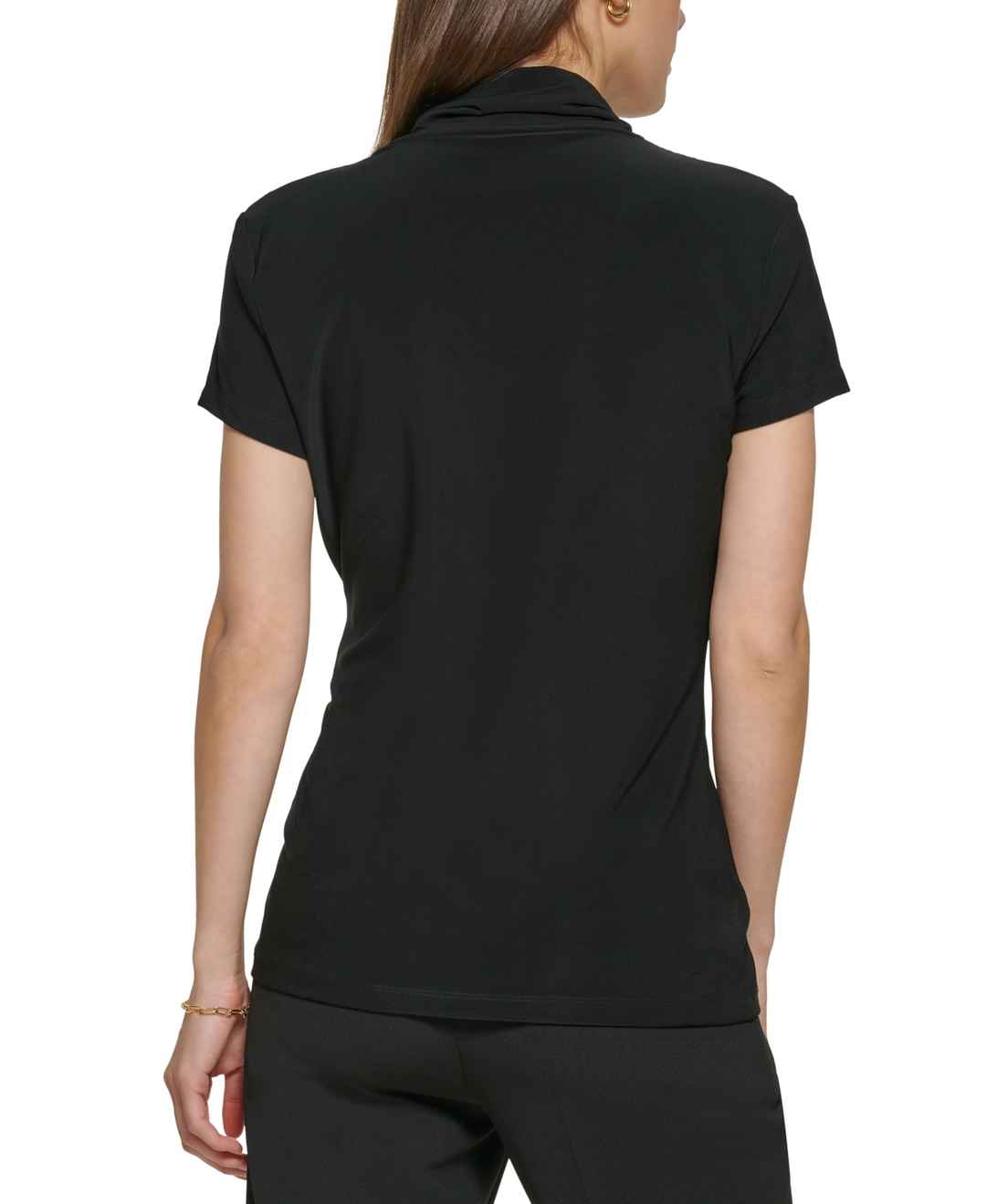 A wrapped bodice adds presence to a Dkny petite matte jersey blouse that works beautifully on its own or paired with a blazer.