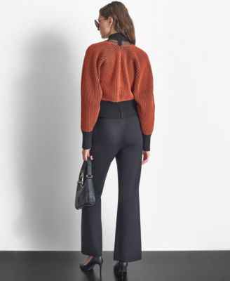 Home DKNY Dkny Womens Turtleneck Long Sleeve Zip Back Mesh Top Soft Ponte Knit High Rise Pull On Pants Contrast Ribbed Open Front Cardigan