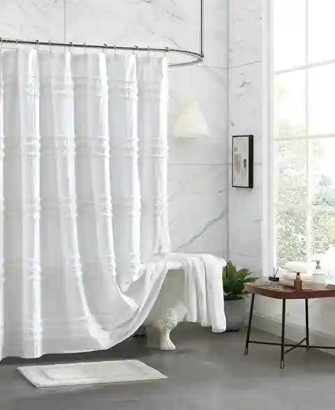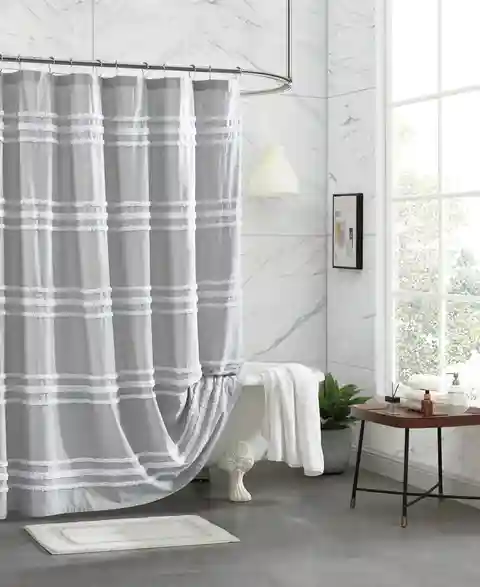 Refresh your personal sanctuary with a modern take on a classic technique presented in the Dkny Chenille stripe shower curtain. A horizontal white chenille stripe offers texture on a soft ground that gives a crisp presentation to this shower curtain.