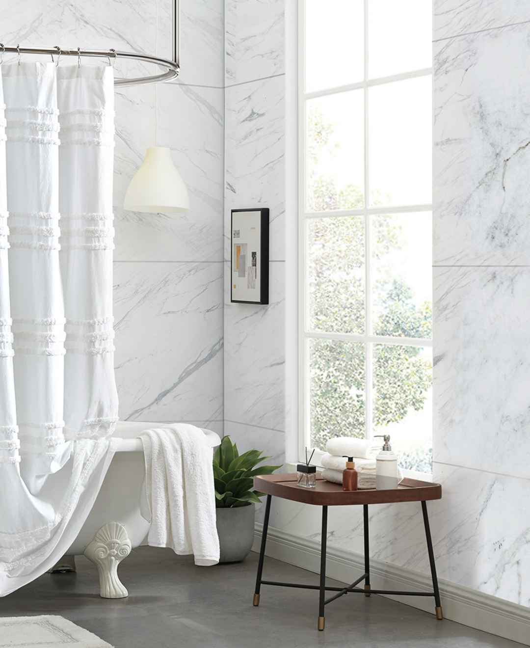 Dkny Chenille Stripe Shower Curtain, 72" x 72" - White