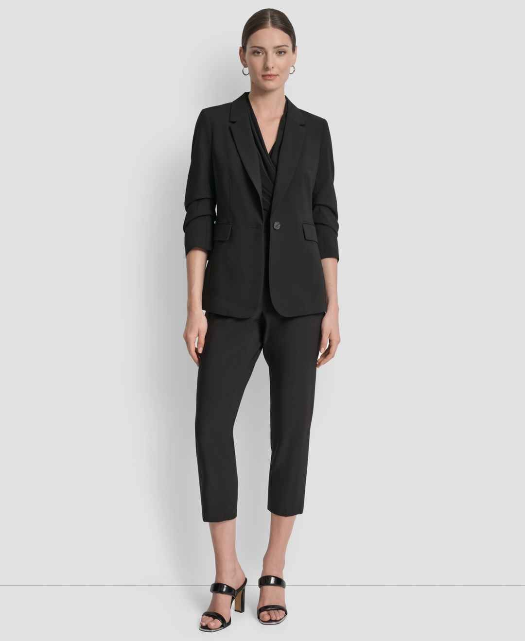 Dkny Women's Ruched-Sleeve One-Button Blazer - Black
