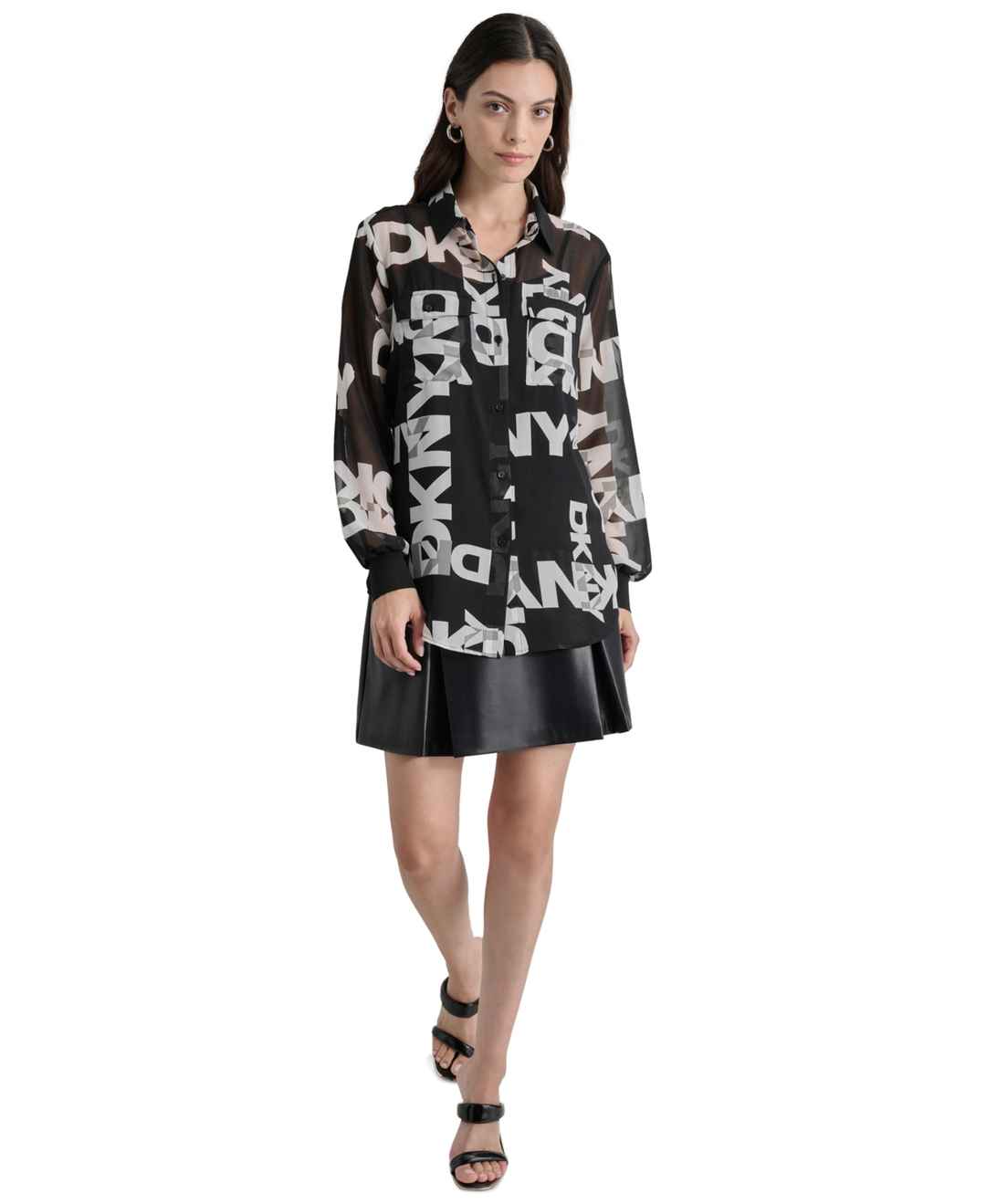 Dkny Women's Logo Long-Sleeve Shirt - Blk/ivory