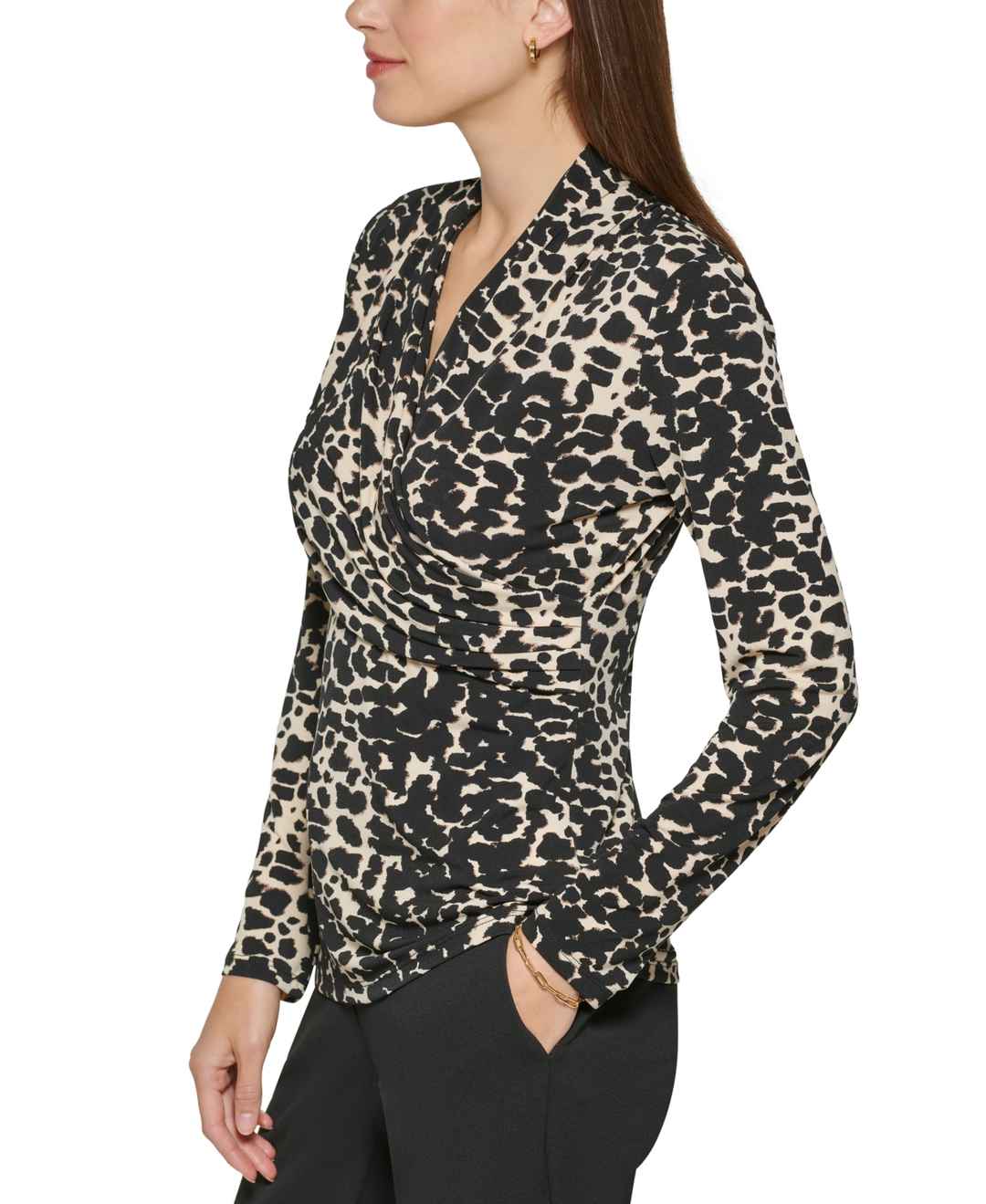 Put together a boldly stylish look with this petite surplice top from Dkny designed with a chic allover print.