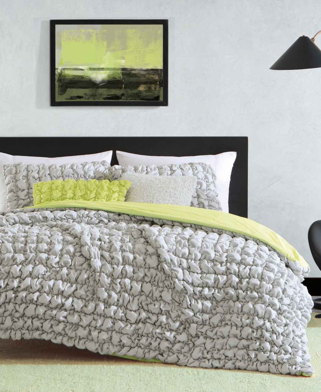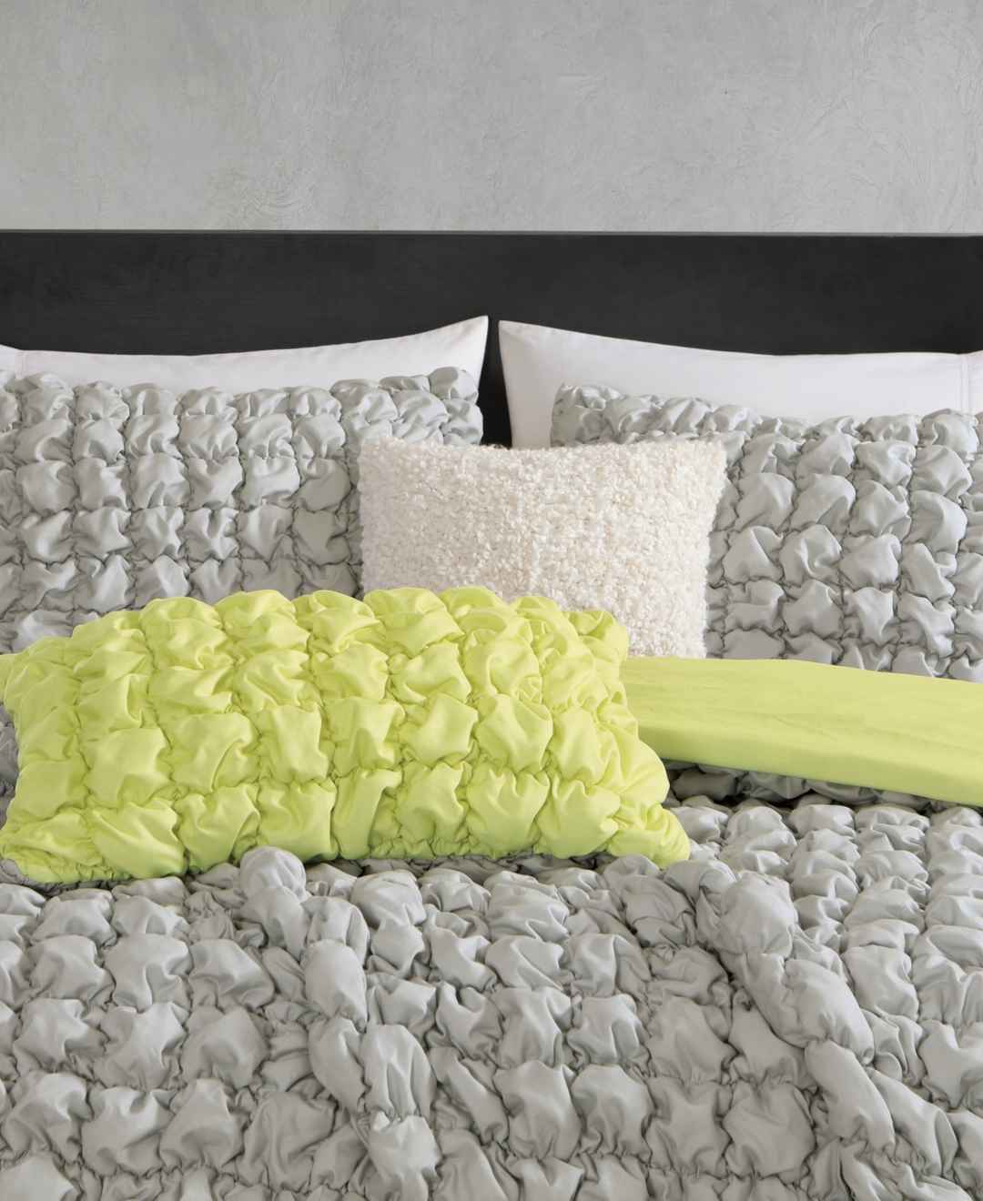 Puff up the style and comfort within your home with the Dkny Puffer Stitch Decorative Pillow. The stitch grid pattern creates a playful, poufy texture, adding dimension to your bed, sofa, or lounger. The quilted pillow is grey with a citron reverse, lending striking contrast to its bubbly appeal.