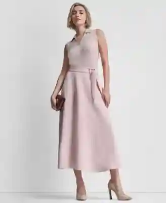 Dkny Womens V Neck Sweater Maxi Skirt With Bow Tie