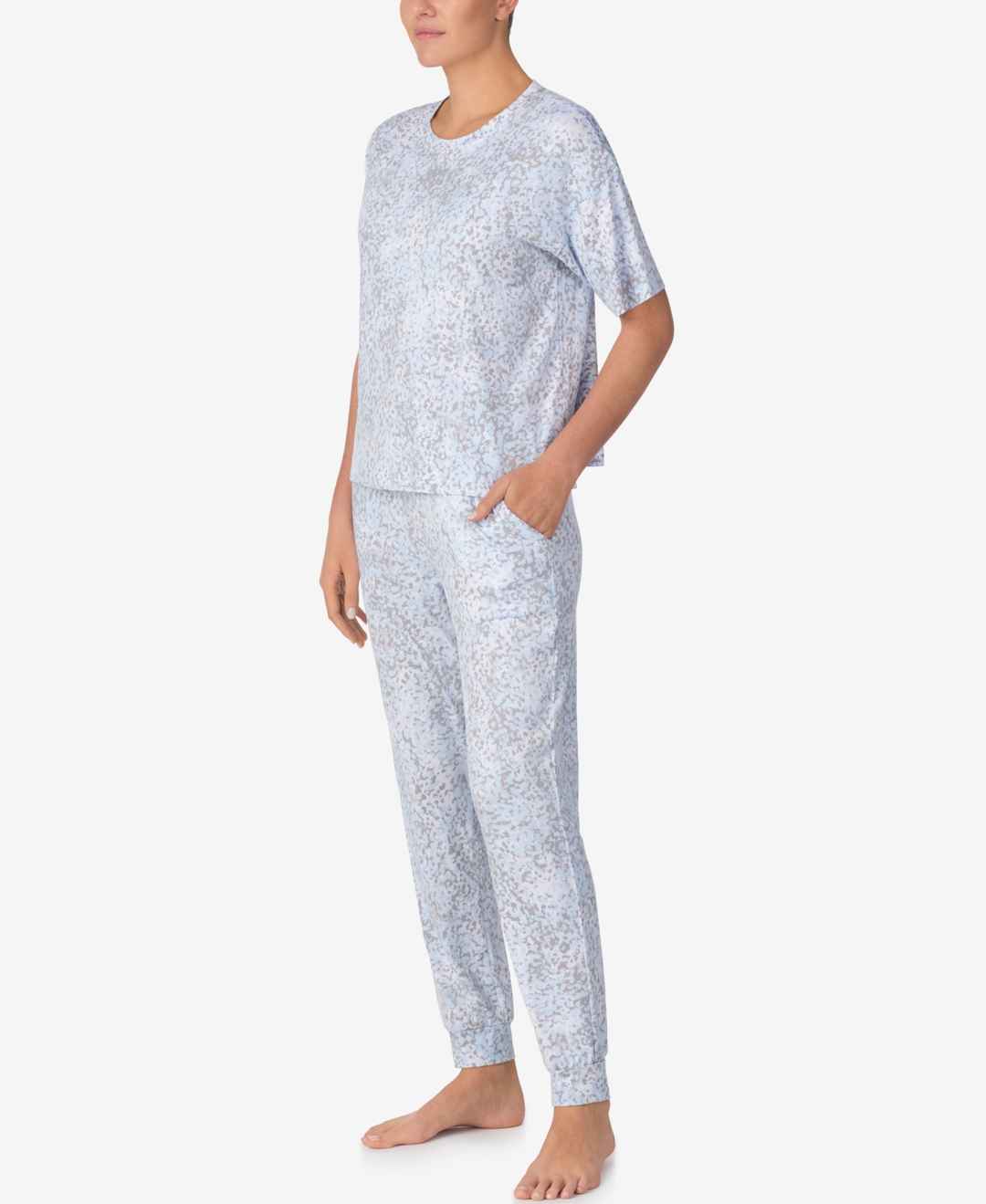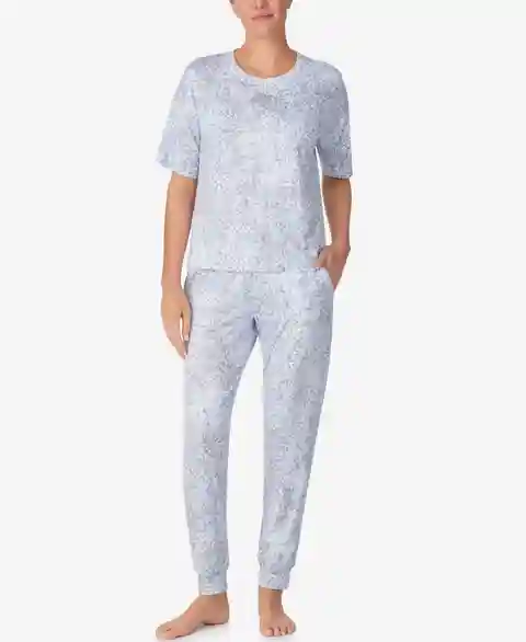 Dkny Women's Short-Sleeve Top & Jogger Pants, 2-Piece Set - Heather Blue