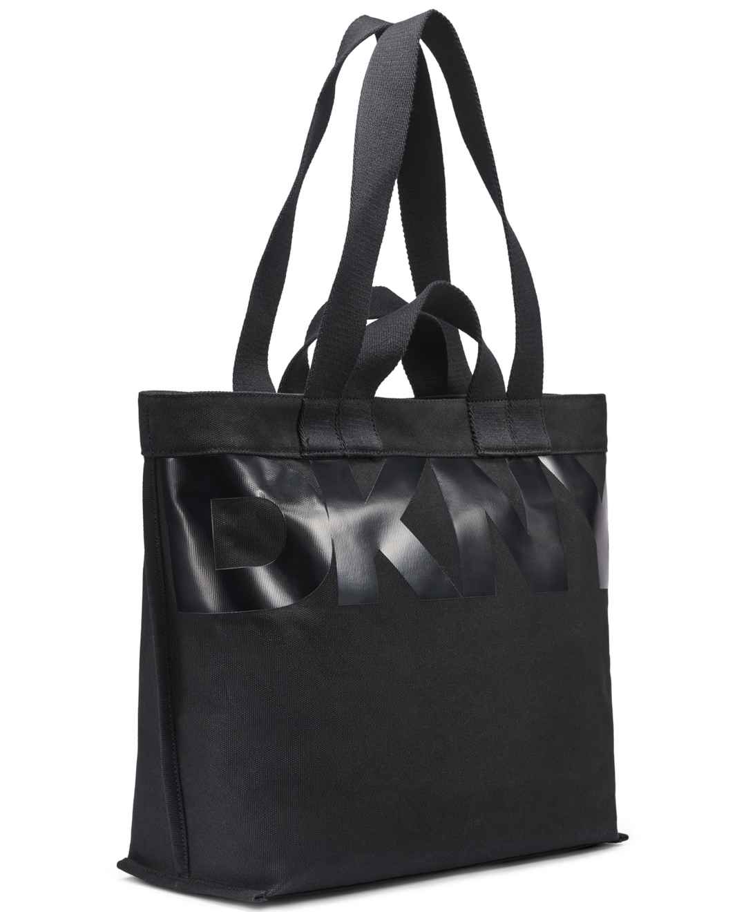 Flaunt this Dkny logo handbag on any occasion. It's easy to take on the go as one of your essential travel accessories