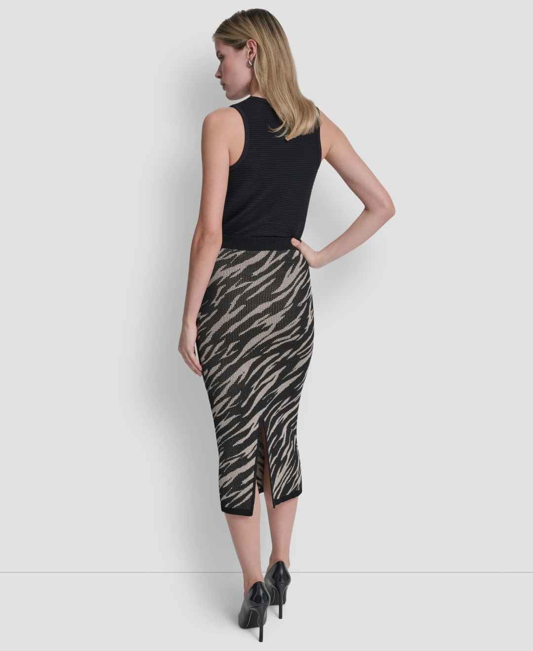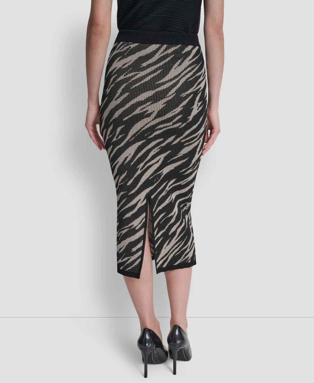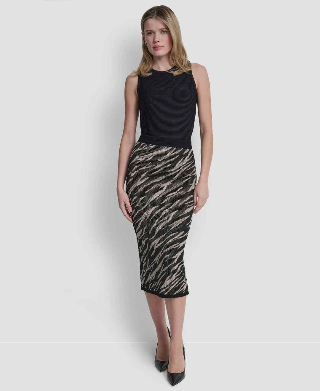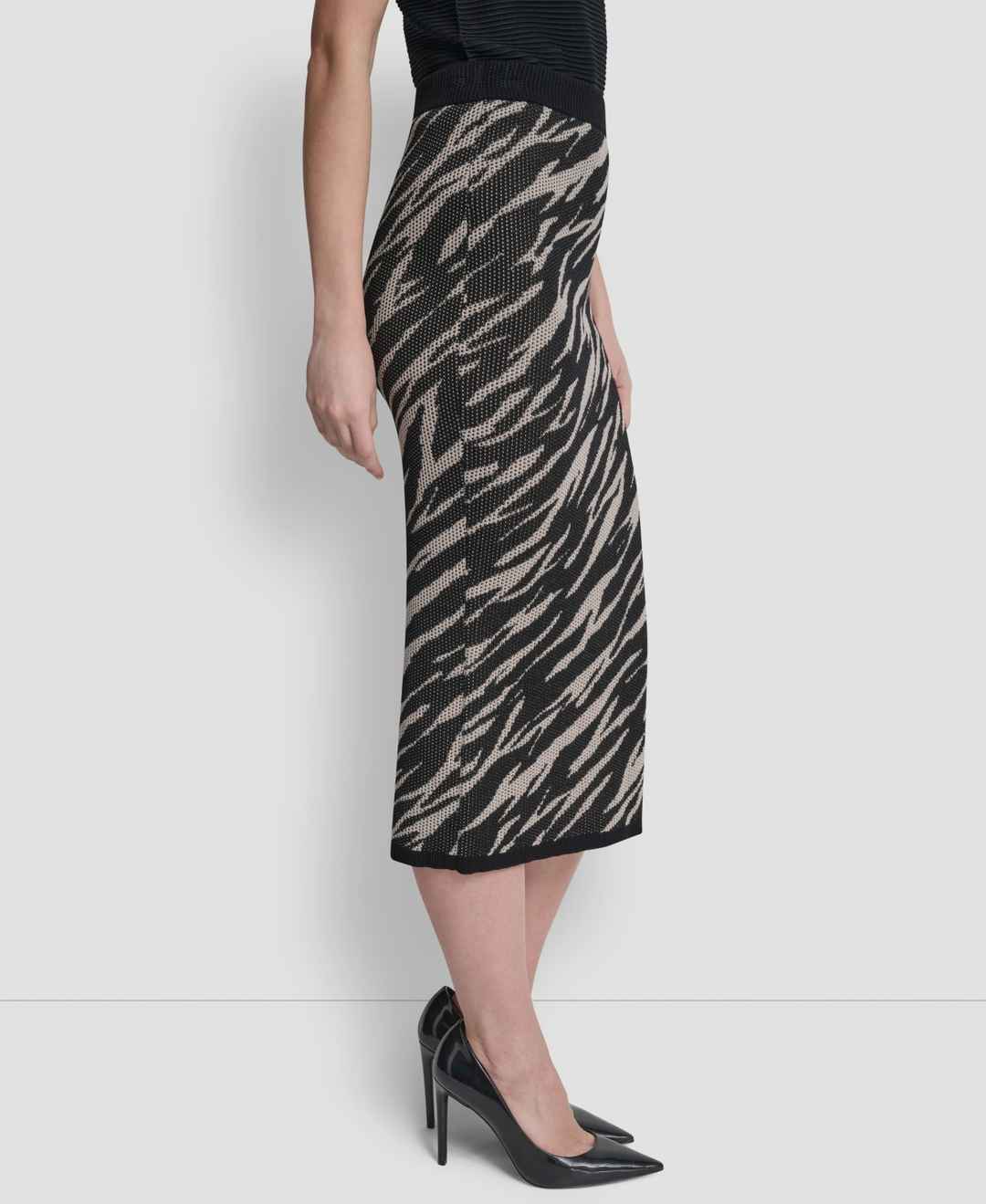 Dkny Women's Pointelle Jacquard Animal Print Pull-On Sweater Skirt - Concrete Animal
