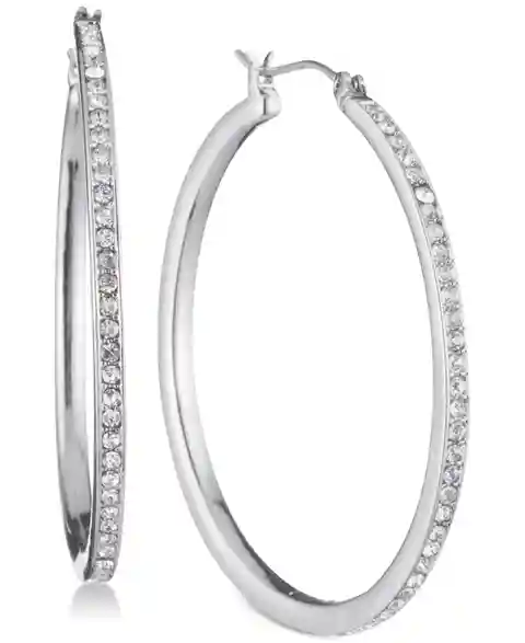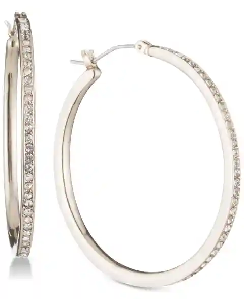 Dkny has the skinny on sparkle with these awesome hoop earrings set in gold-tone mixed metal with shimmering pave. Approximate diameter: 1".