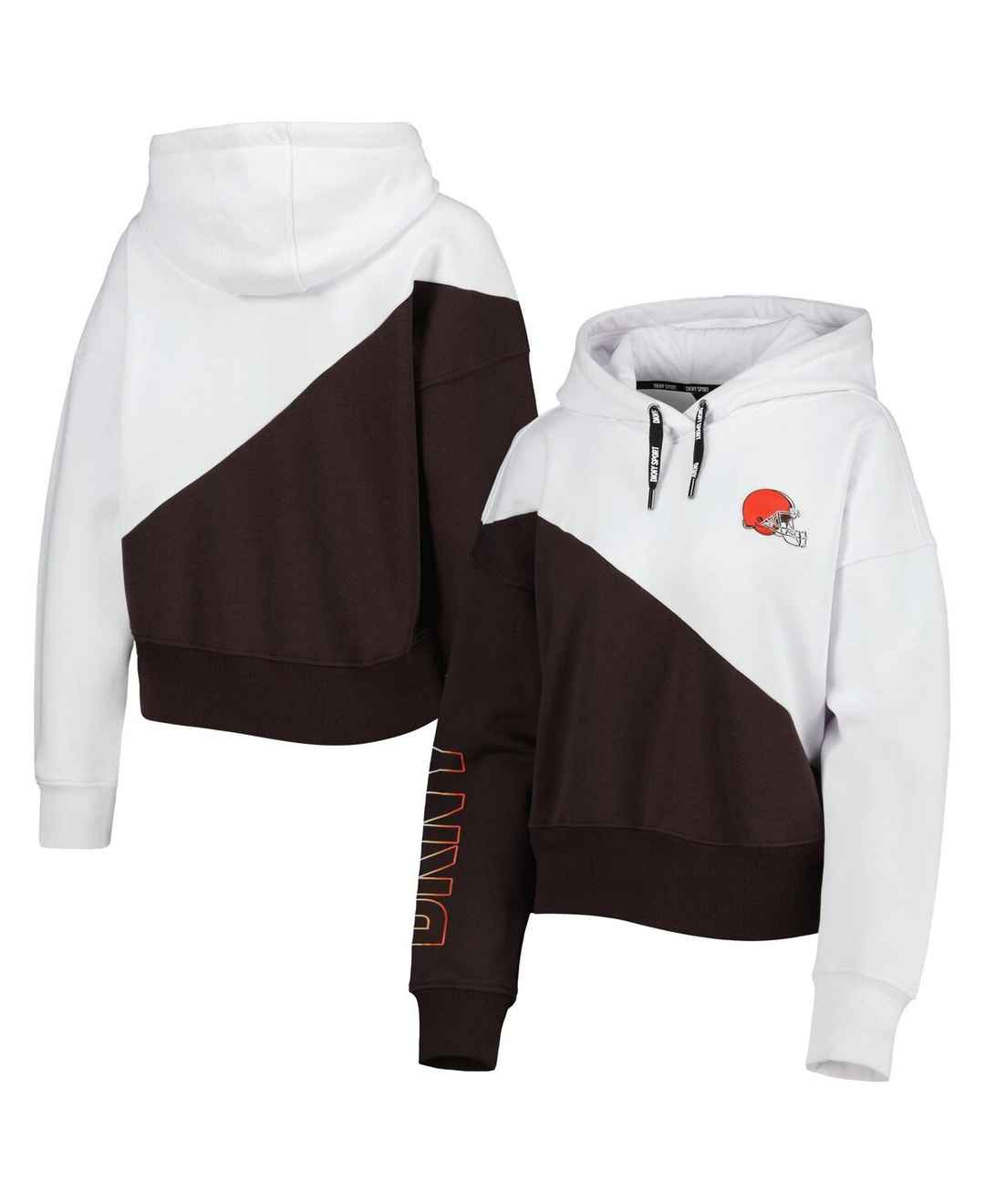 Home DKNY Women's Dkny Sport White, Brown Cleveland Browns Bobbi Color Blocked Pullover Hoodie - White, Brown