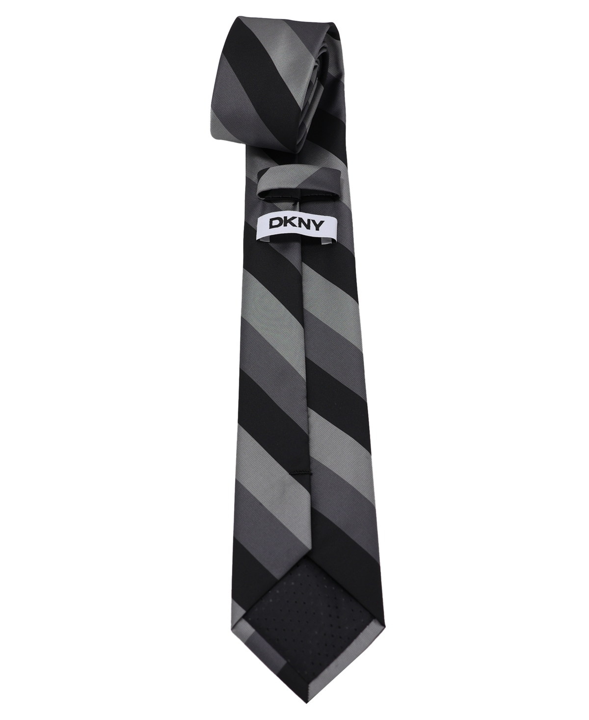 Introduce sharp structure with this Dkny neck tie, designed with a sleek, narrow silhouette and crisp striped detailing for a modern, tailored look. Refined proportions deliver a versatile finishing accent that pairs seamlessly with suits and polished dress shirts.