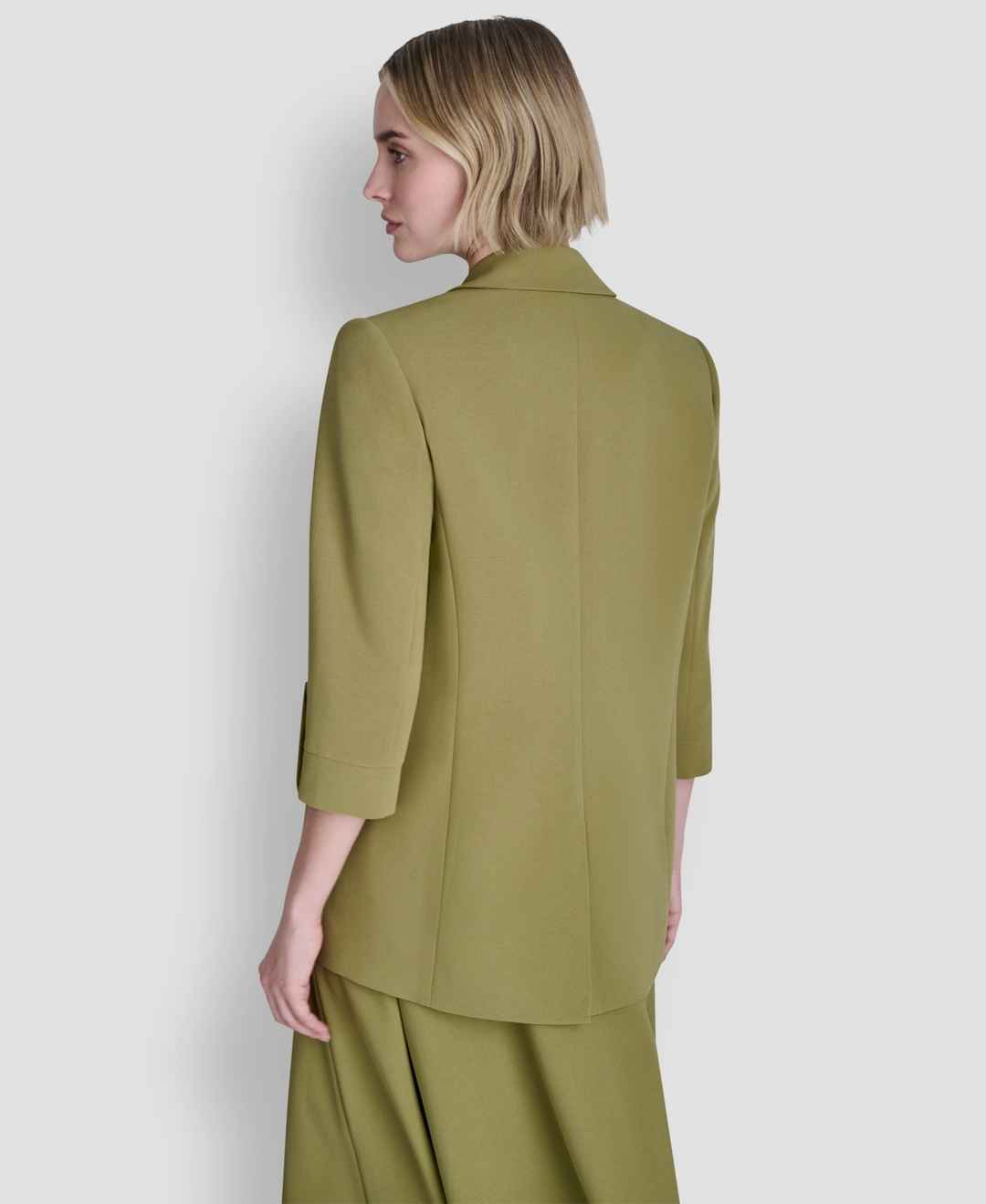 Command attention in this effortlessly chic open-front blazer from Dkny featuring allover texture for modern dimension. Rolled 3/4-sleeves enhance the silhouette with contemporary sophistication and versatile appeal.