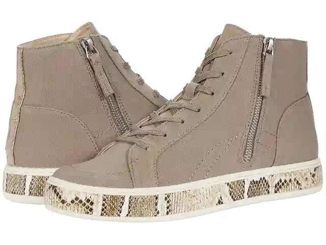 Spice up a casual look with the Dolce Vita LORELI, a lace-up sneaker featuring tonal laces, accent midsole and stripe at heel counter. High-top canvas sneaker with round toe and inside zip for easy on and off. Textile lining and insole. Textile and synthetic sole. Imported. Measurements: Weight: 13 ...more