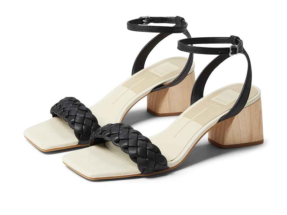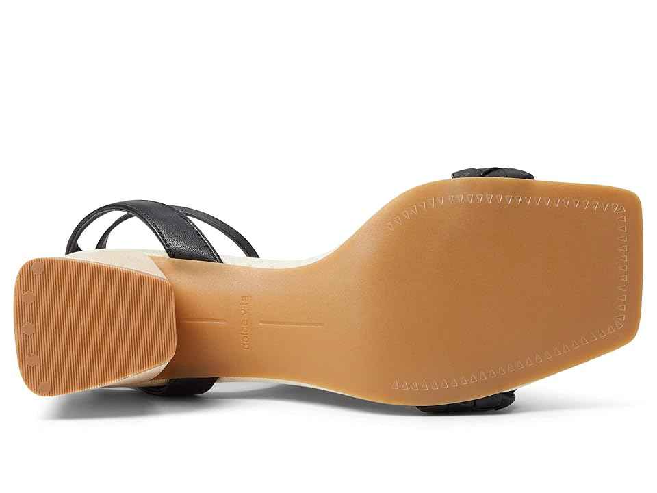 Redefine your footwear collection with the stylish and classy Dolce Vita Maren sandals. Synthetic upper. Synthetic lining. Synthetic sock. Square open toe design. Front braided strap. Adjustable buckle closure. Block heels. Rubber and plastic outsole. Imported. Measurements: Heel Height: 2 1 2 in We...more