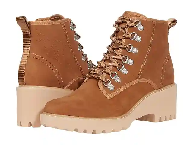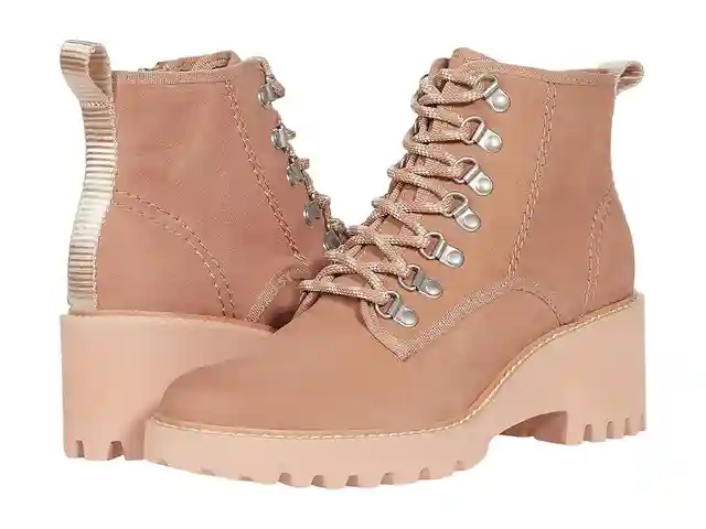 Give a tough, utilitarian look to your everyday style in the Dolce Vita Huey Hiker. Lace-up with side zipper closure for a secure fit. Round toe silhouette. Pull tab in back for easy on and off access. Leather upper. Textile lining, leather insole. Synthetic outsole. Imported. Measurements: Heel Hei...more