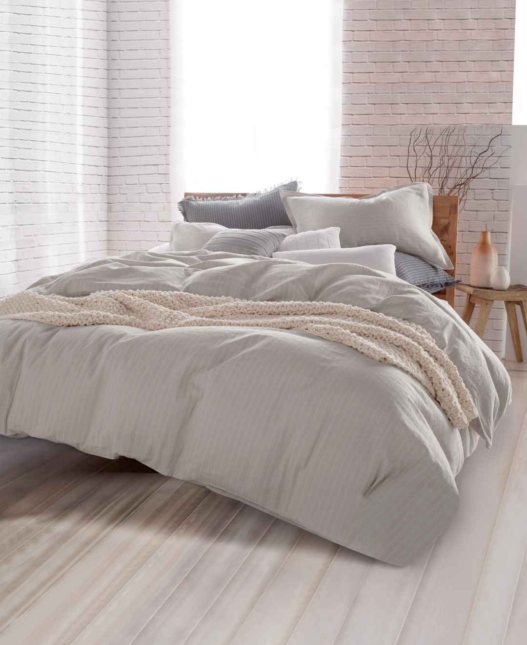The DKNYPure Comfy Comforter set is ultra soft, soothing and begs to be snuggled under thanks to its gauzy 100 percent cotton. A subtle stripe pattern adds a sophisticated flair.