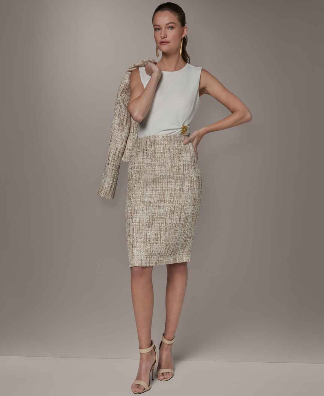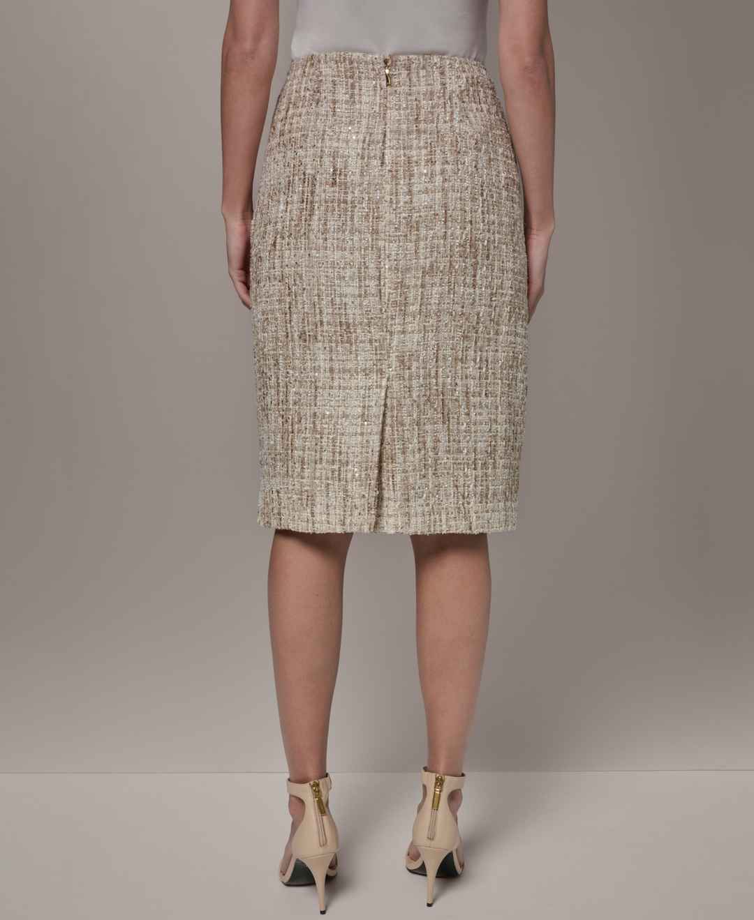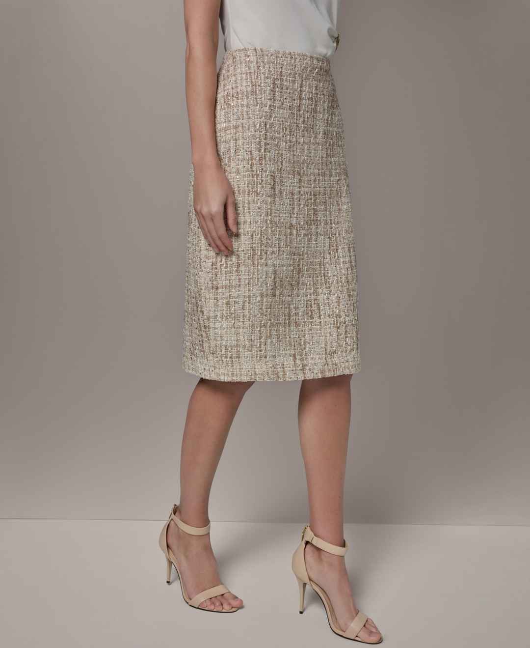 Tailored for a clean, modern look, this Donna Karan New York skirt features a knee-length pencil silhouette. An invisible center-back zipper provides a seamless finish, while the absence of pockets and belt loops keeps the design minimal and polished.
