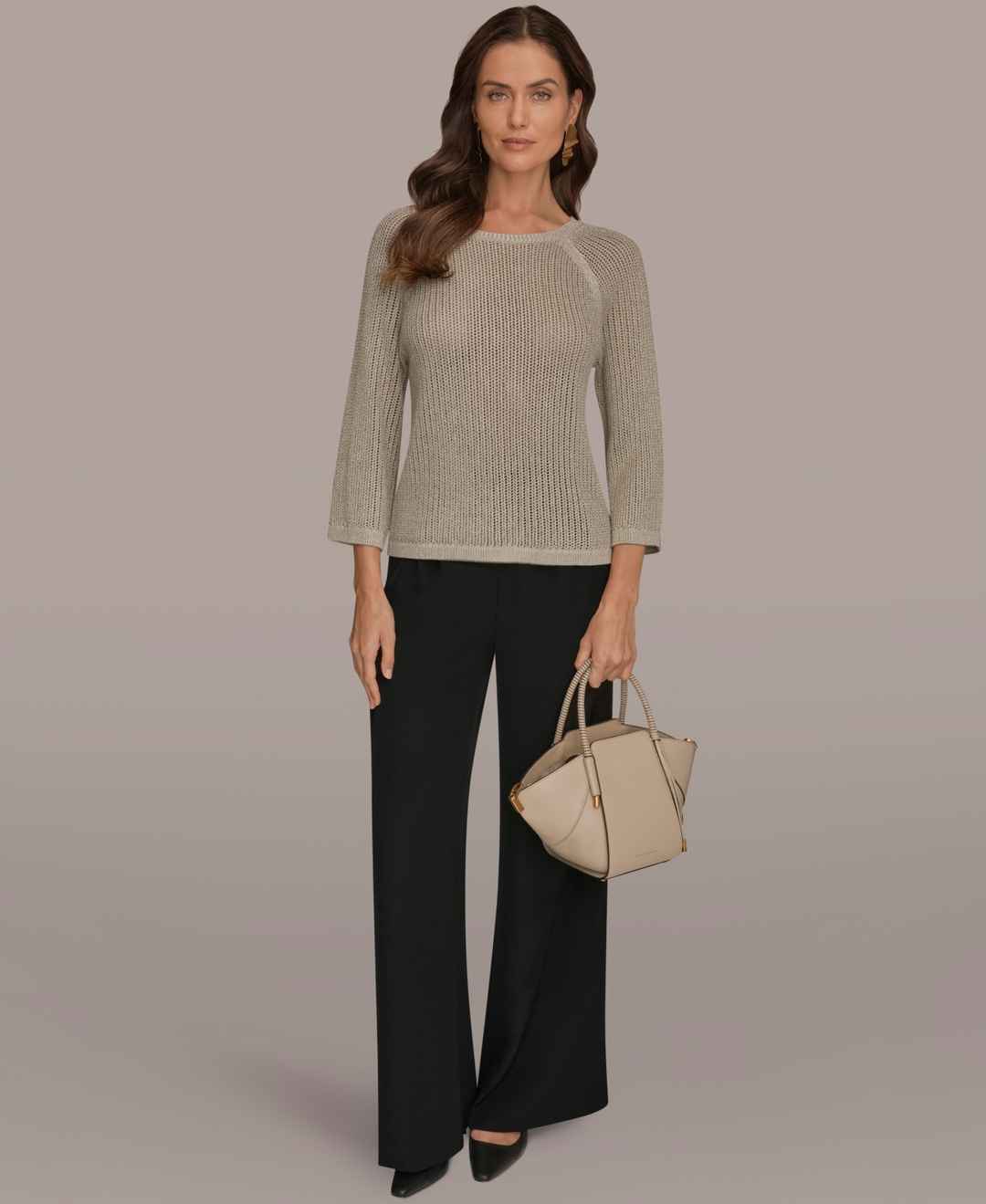 Donna Karan New York Petite Crew Neck Sweater - Tuscan Gray
