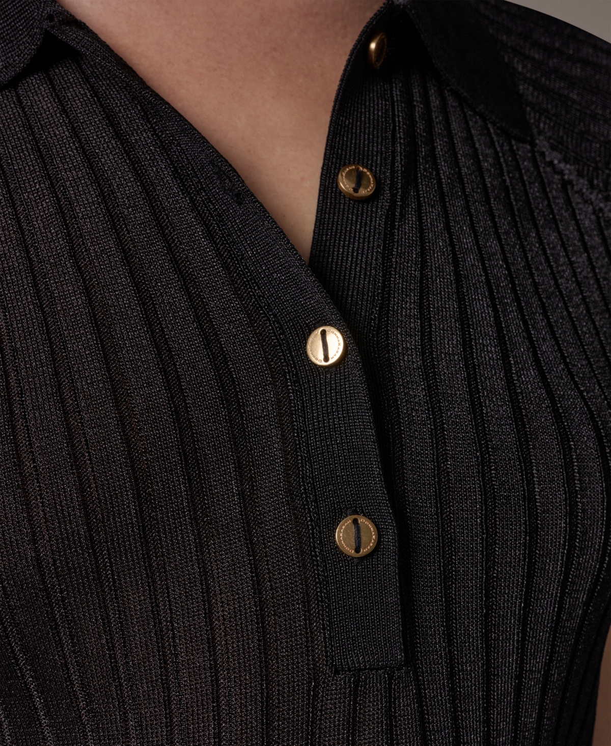 Polished knit styling sets apart this Donna Karan New York short-sleeve sweater top, tailored with a classic polo collar and button placket that bring a composed look. Soft knit construction supports effortless pairing with tailored pants or skirts for elevated everyday dressing.