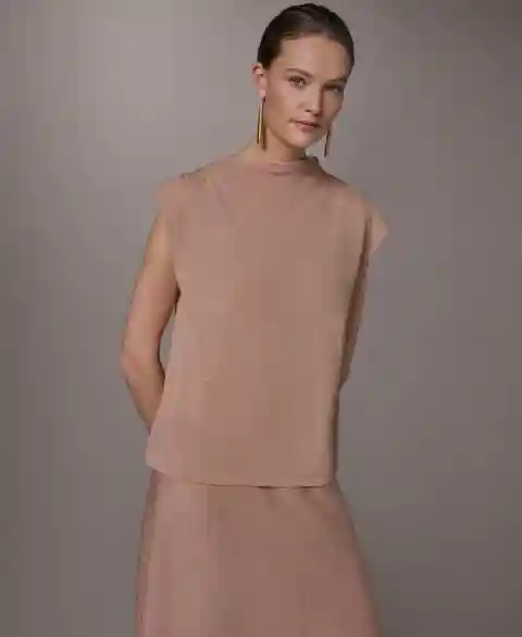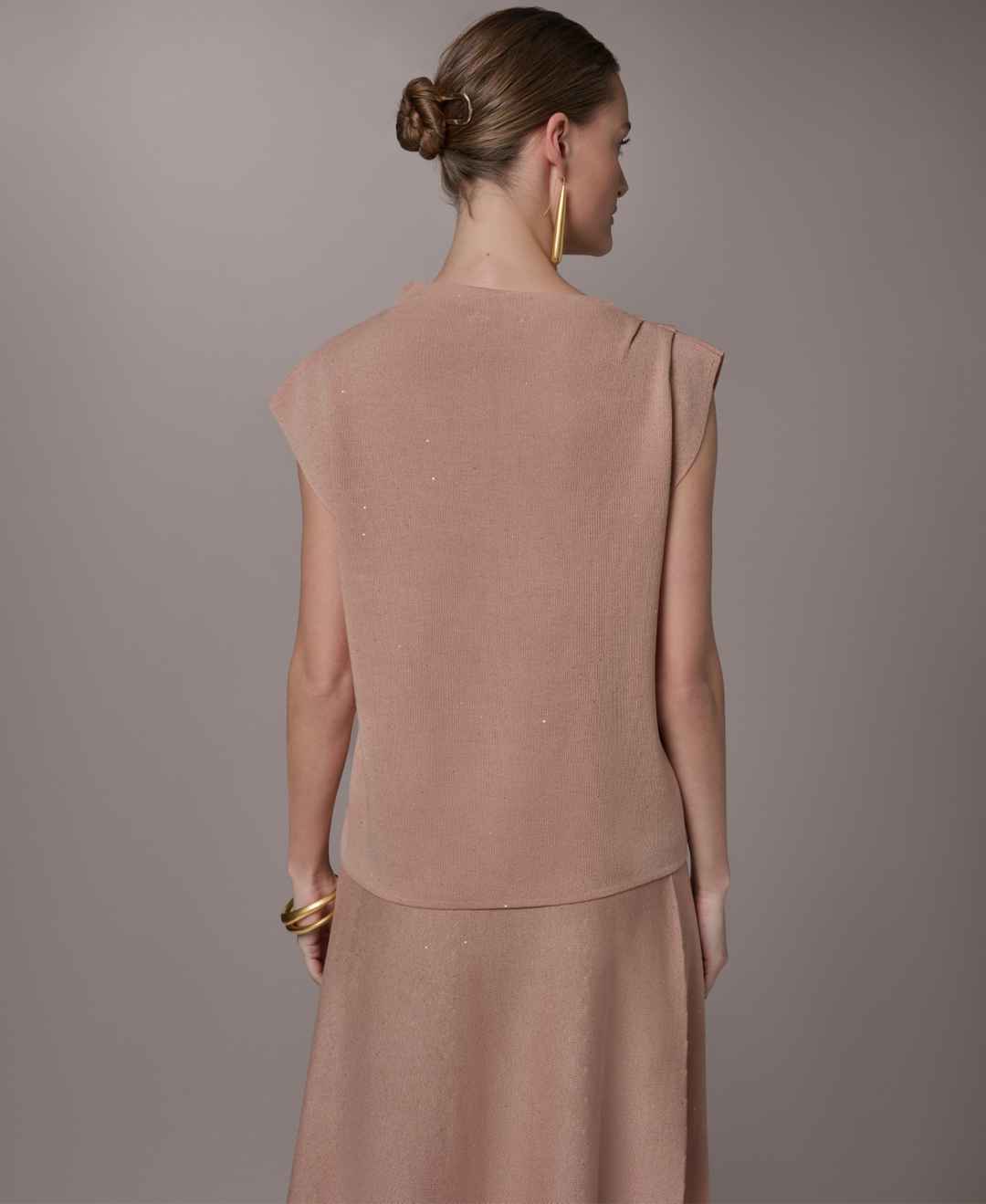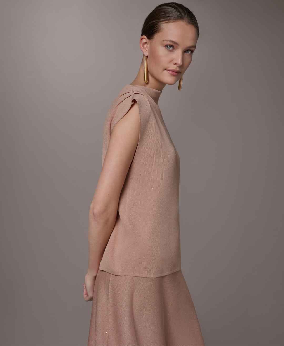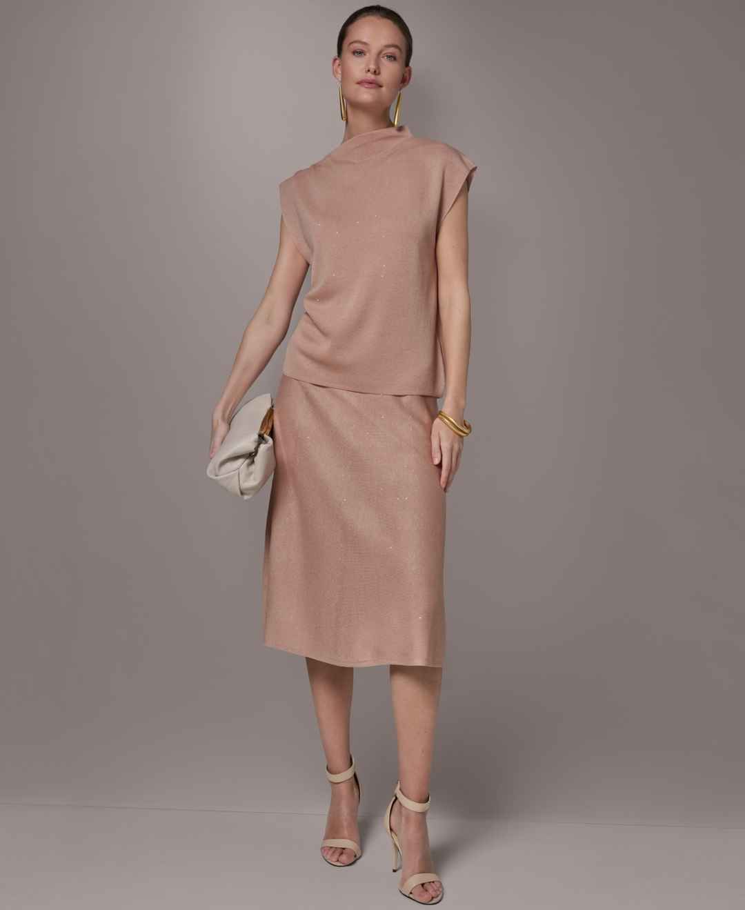 Wrap yourself in soft sophistication with this Donna Karan New York sweater, featuring a striking asymmetric mock neck that adds a modern, fashion-forward edge. The sleeveless cut allows for versatile layering over shirts or under jackets.