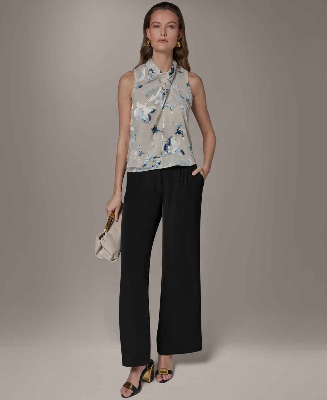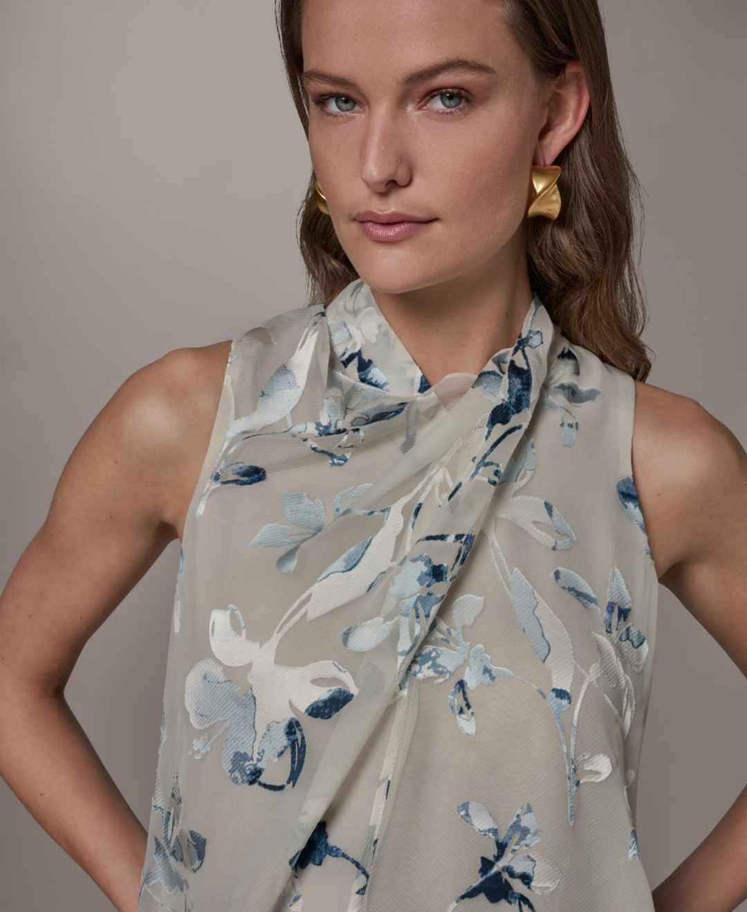 Donna Karan New York Petite Flocked Floral Top - Sea Mist Multi