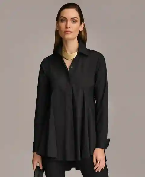 Start with skinny pants or jeans then add drama to your silhouette with this gorgeously flared blouse by Donna Karan.