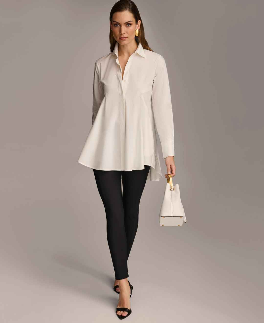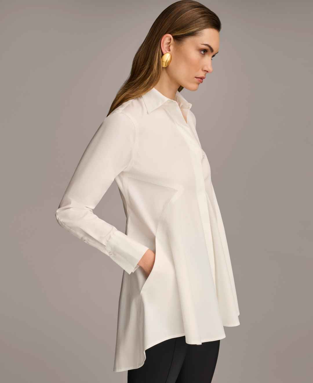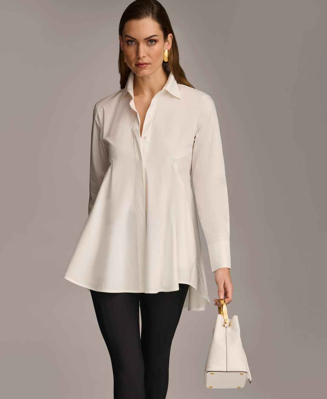 Donna Karan Women's A-Line Button Down Poplin Tunic - Cream