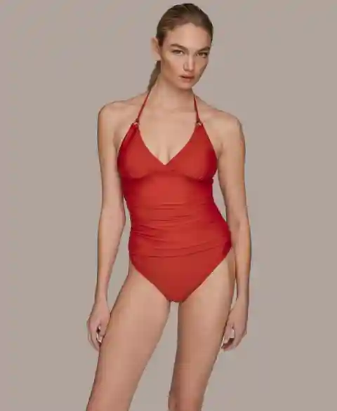 Donna Karan Women's Halter Neck Tankini - Red