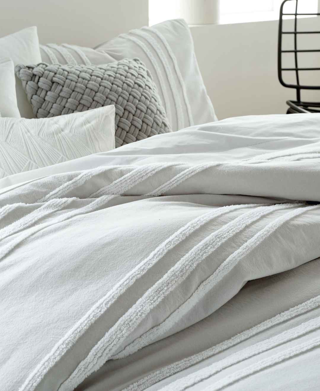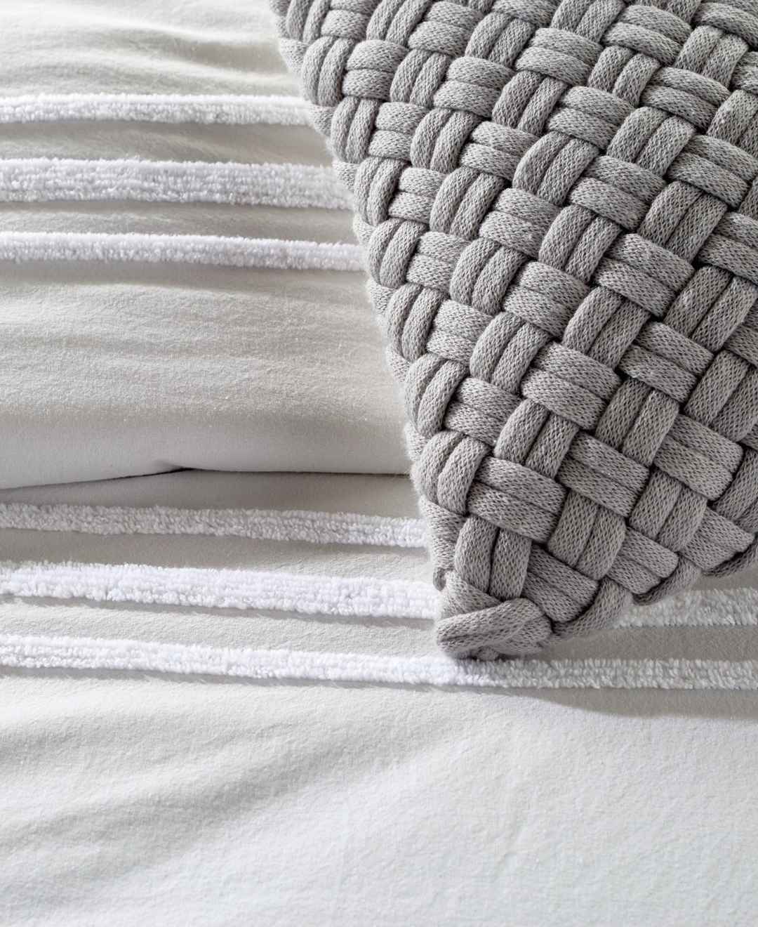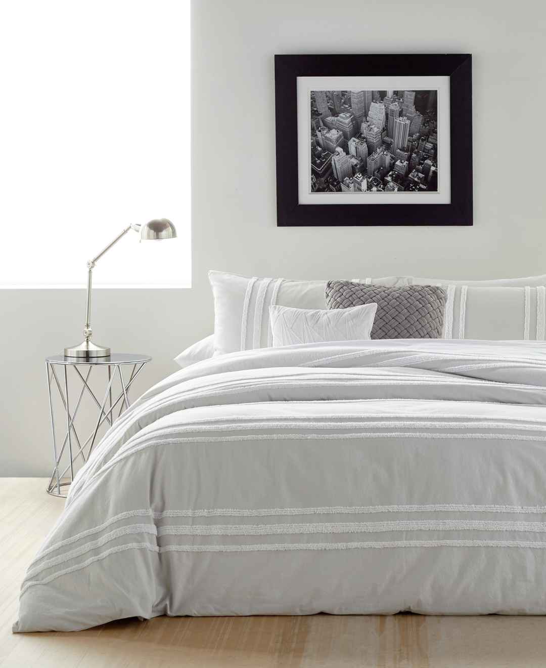 A modern take on a classic technique is presented in the Dkny Chenille Stripe Comforter Set. A horizontal white chenille stripe on a soft grey ground gives a crisp presentation to this woven fabric, while the coordinating shams tie the ensemble together with their opposite vertical stripes. Availabl...more