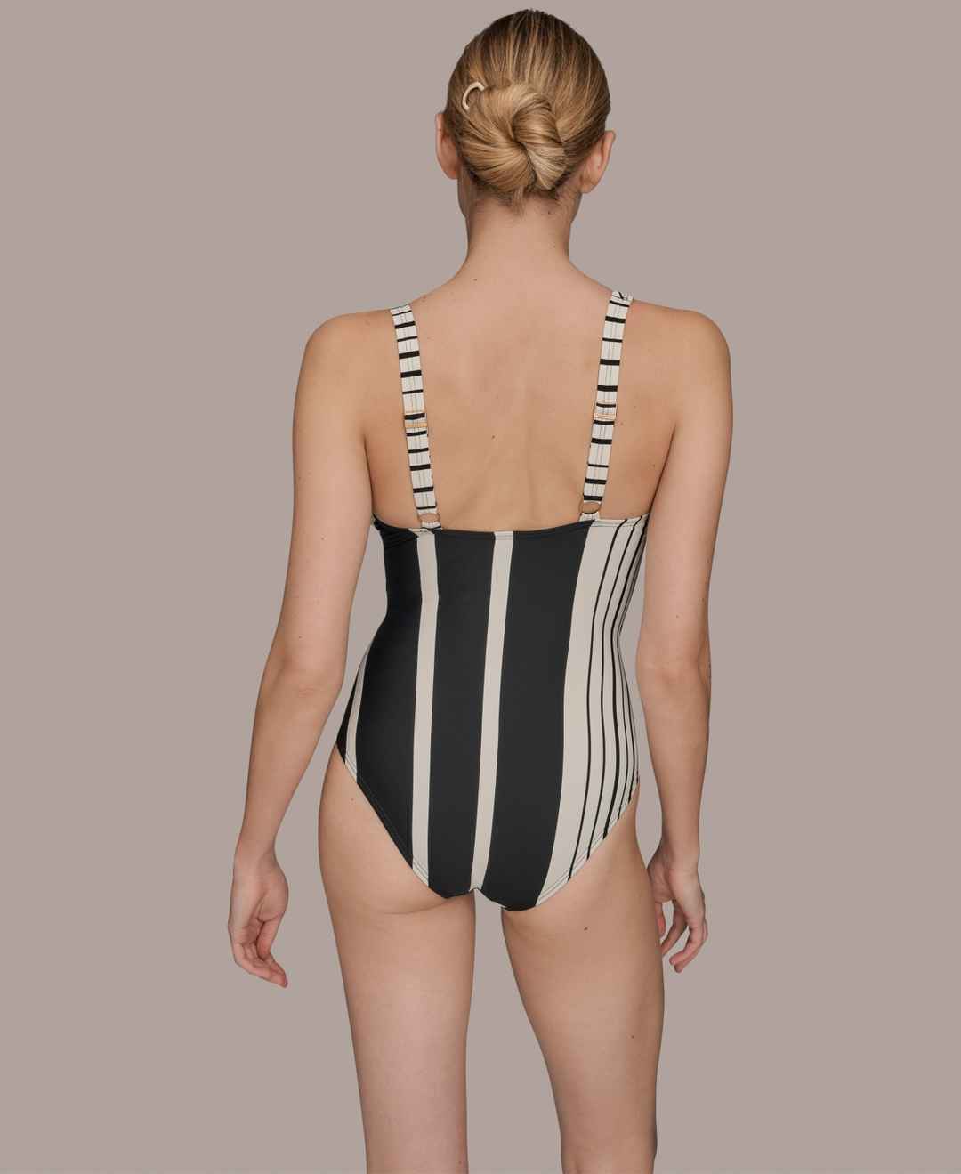 Donna Karan Women's Wrap Front One-Piece Swimsuit - Black/Cream Mixed Stripe