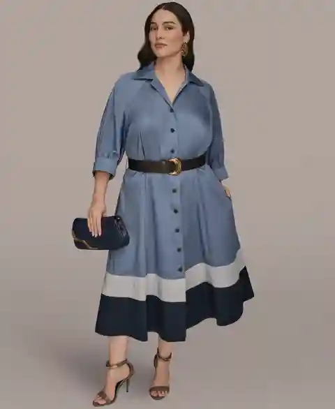 Donna Karan New York Plus Size Belted Shirtdress - Tempest Dusk/Nightfall