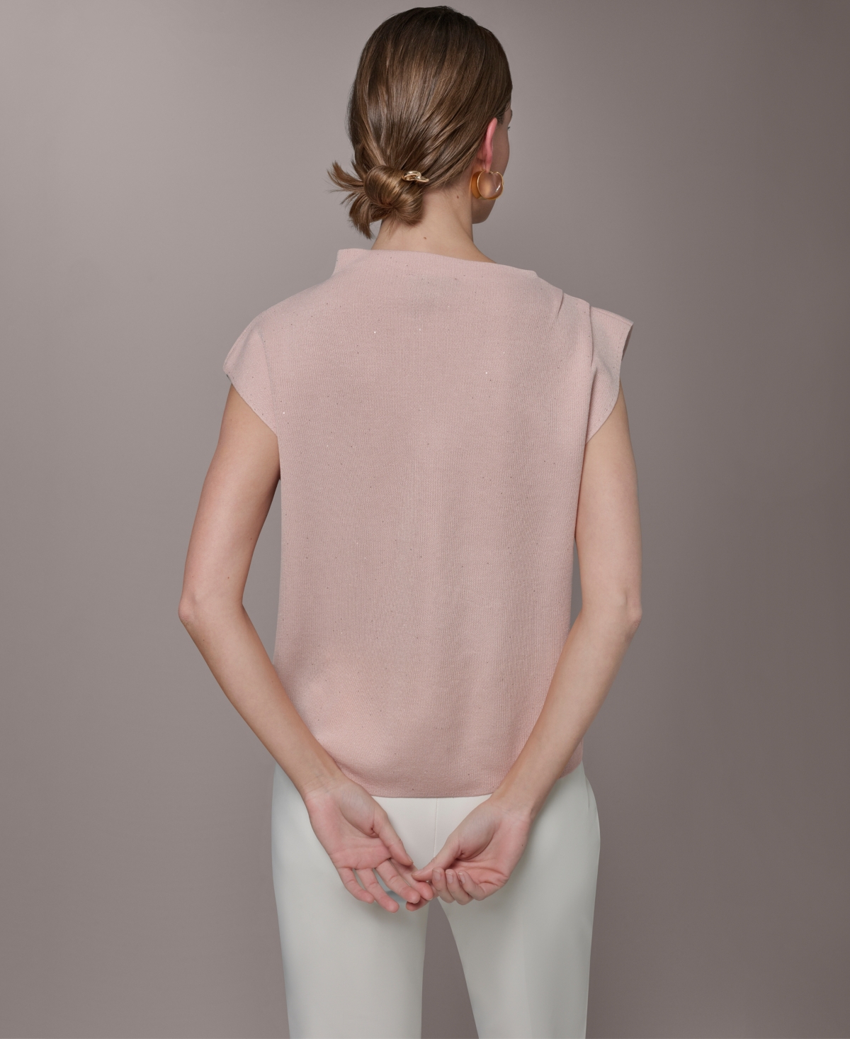 Wrap yourself in soft sophistication with this Donna Karan New York sweater, featuring a striking asymmetric mock neck that adds a modern, fashion-forward edge. The sleeveless cut allows for versatile layering over shirts or under jackets.