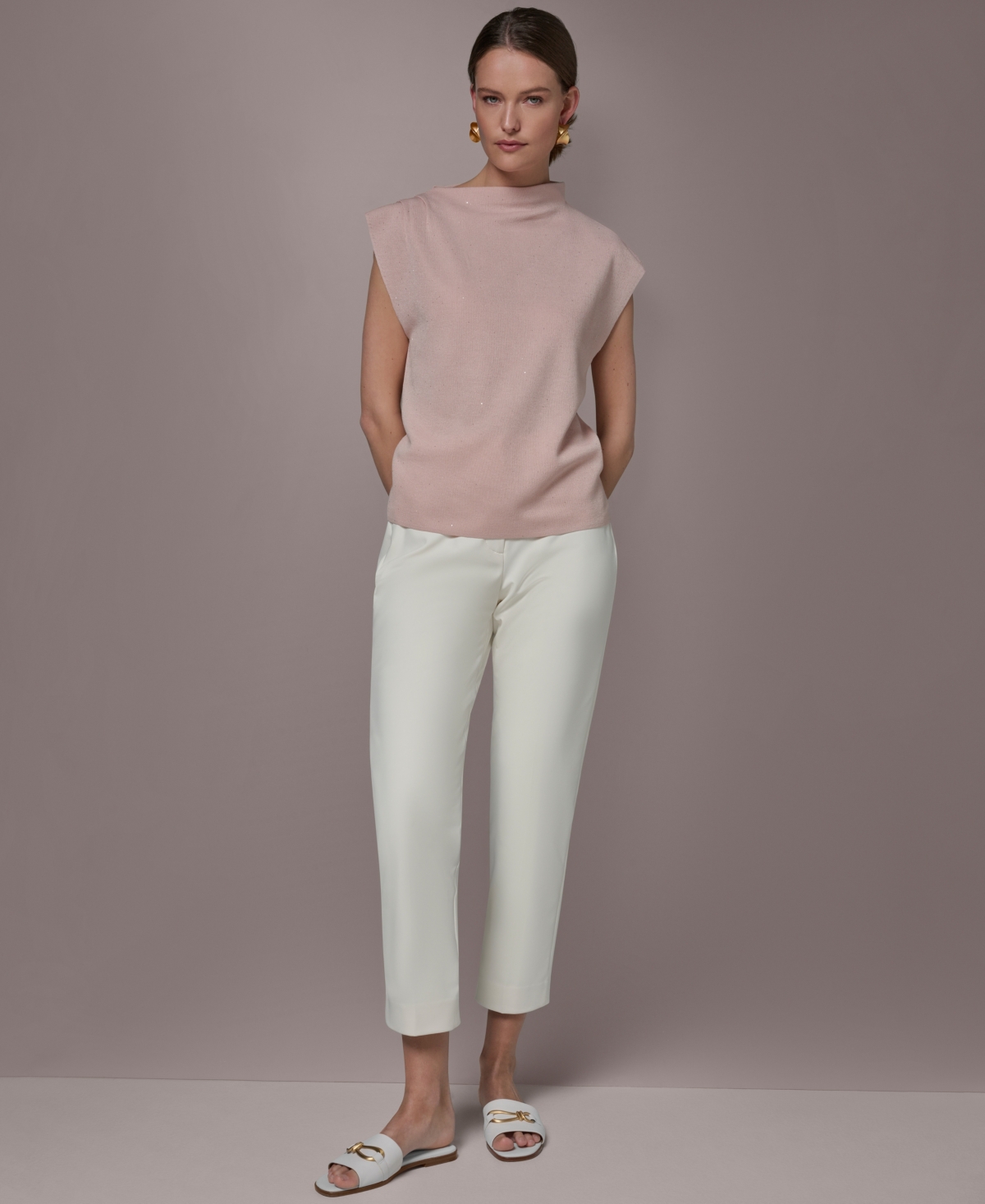 Donna Karan New York Women's Asymmetric Mock Neck Sweater - Snow Petal