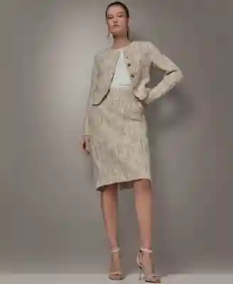 Donna Karan New York Womens Cropped Button Front Jacket Knee Length Skirt