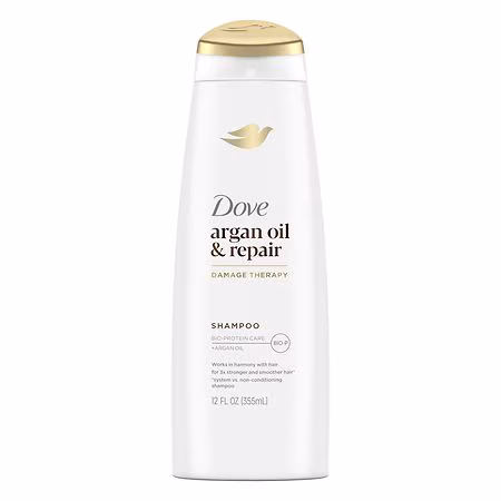 For damaged or dry hair, try Dove Argan Oil & Damage Repair Shampoo. This nourishing shampoo is infused with argan, coconut and marula oils to visibly repair damaged hair and nourish it from within. Dove Argan Oil & Damage Repair Shampoo progressively nourishes the strands from within so that your h...more