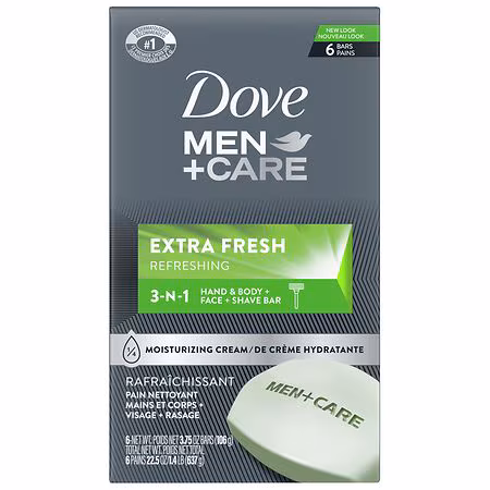 Looking for a bar that leaves skin feeling refreshed, hydrated, and invigorated? Dove Men+Care Extra Fresh Body and Face Bar delivers a deep, refreshing clean and hydration. Unlike an ordinary bar soap or body soap that can dry out skin, this bar is formulated with more moisturizer to help maintain ...more