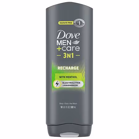 Get healthier, smoother feeling skin all day with Dove Men+Care re-energizing Recharge 3N1 body, face and hair wash. With the re-energizing scent of refreshing menthol and masculine sandalwood, this body wash for men will soothe your senses and nourish your skin. It has plant-based ingredients and n...more