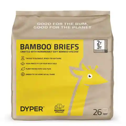 Pack of training pants made with responsibly-sourced Bamboo viscose fibers. Compostable with REDYPER. Unscented, unprinted & absorbent. Soft, plant-based materials delivering long lasting comfort. Each pack contains 26 2T-3T disposable training pants.