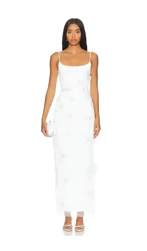 ELLIATT Dahlia Midi Dress in Ivory. - size XL (also in L, M, S, XS) ELLIATT Dahlia Midi Dress in Ivory. - size XL (also in L, M, S, XS) Self: 100% polyester Lining: 100% polyester. Made in China. Dry clean only. Fully lined. Hidden back zipper closure. Adjustable shoulder straps. Mesh fabric with to...more