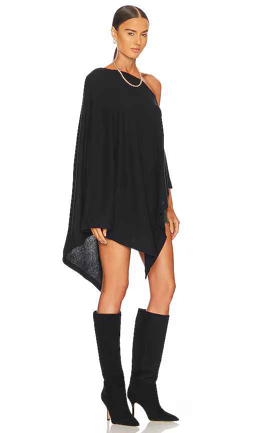 Enza Costa Cashmere Poncho in Black. Enza Costa Cashmere Poncho in Black. 85% cotton 15% cashmere. Made in USA. Hand wash. Off shoulder styling. Soft knit fabric with kerchief hem. ENZA-WO22. CJ8072. Designed to transform everyday basics into luxury essentials, Enza Costa's unique brand of minimalis...more