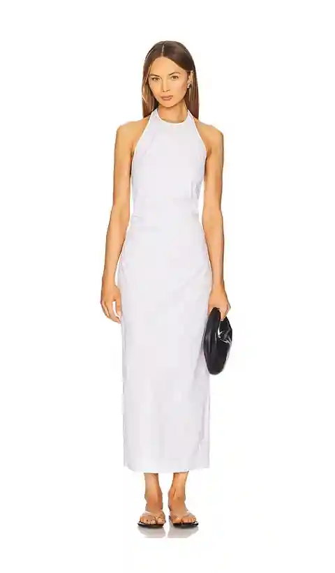 Enza Costa Poplin Halter Dress in White. - size 2 (also in 1) Enza Costa Poplin Halter Dress in White. - size 2 (also in 1) 100% cotton. Machine wash. Unlined. Halterneck hook and eye clasp closure Hidden back zipper and tie-up closure. Back cut-out detail. Poplin fabric with back vent. ENZA-WD528. ...more