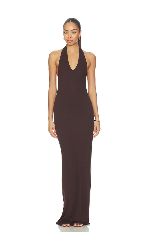 Home Enza Costa Enza Costa Silk Rib U-neck Halter Fluid Maxi Dress in Chocolate. - size L (also in S, M, XL)