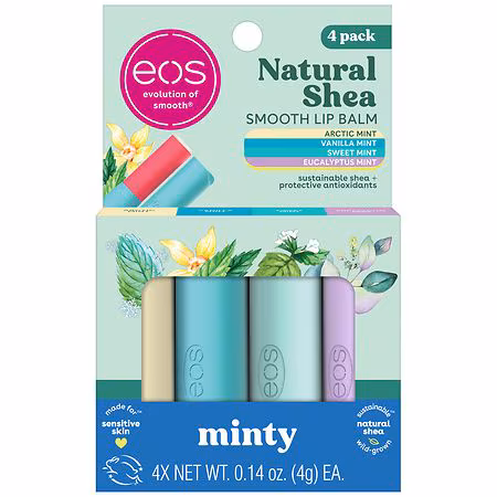 paid linkeos Natural Shea Lip Balm, Minty Variety Minty - 0.14 oz x 4 pack