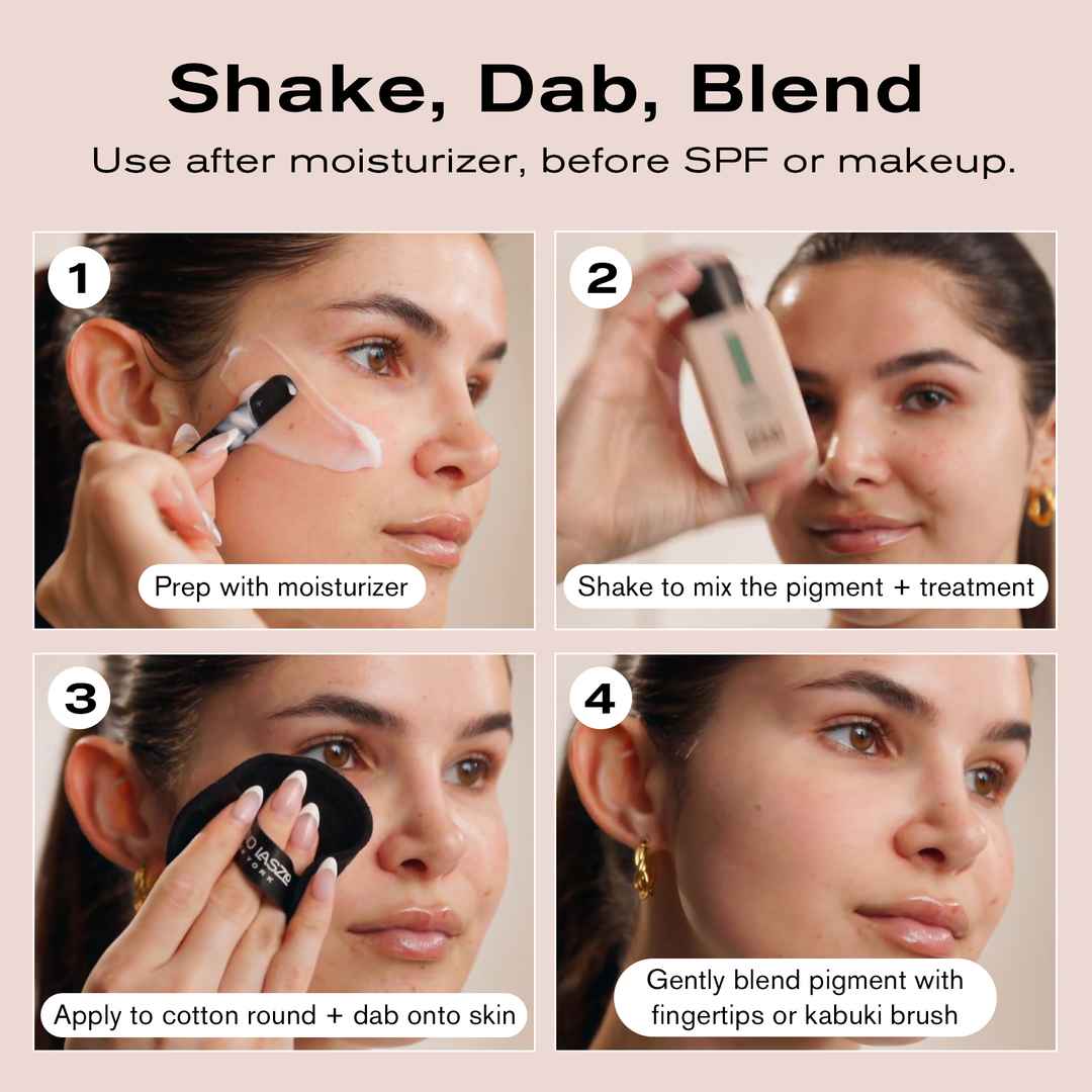 A shake-to-mix, tinted toner treatment available in 4 shades, that works across skin tones. Helps to even skin tone, control excess oil and visibly reduce pores for a sheer, matte finish.