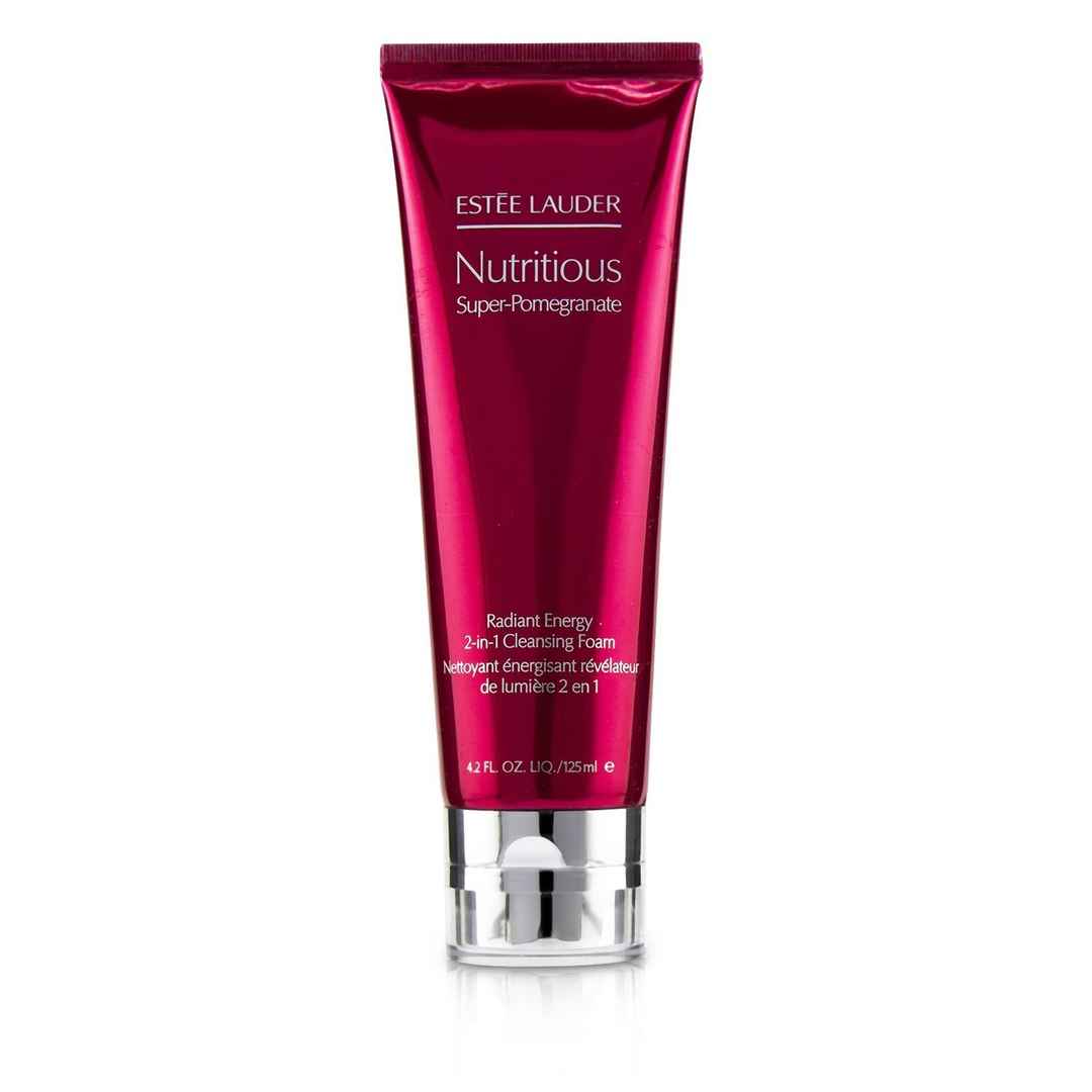 Estee Lauder's Nutritious Super-Pomegranate - Radiant Energy 2-in-1 Cleansing Foam clears the skin of dirt and impurities while making skin look more awake, fresh, and luminous. This foam can be used daily, morning and night, as a gentle cleanser, or once a week as a purifying mask.