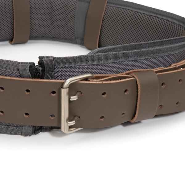 Designed and constructed for maximum utility and ultimate reliability, this Estwing belt combines a top grain cowhide leather belt with a 4-inch wide padded mesh liner to make a great base with which to assemble a custom tool belt perfect for your needs. The belt secures with a durable steel dual pr...more