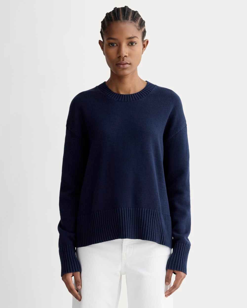 Here to give you the balance you need in your life, this sweater is made from 100% organic cotton, and features a boxy fit, dropped shoulders, and has a crew neckline in a chunky rib stitch—also on the cuffs and hem. Layering well over everything—from tees to shirts and dresses, it’s designed to be ...more