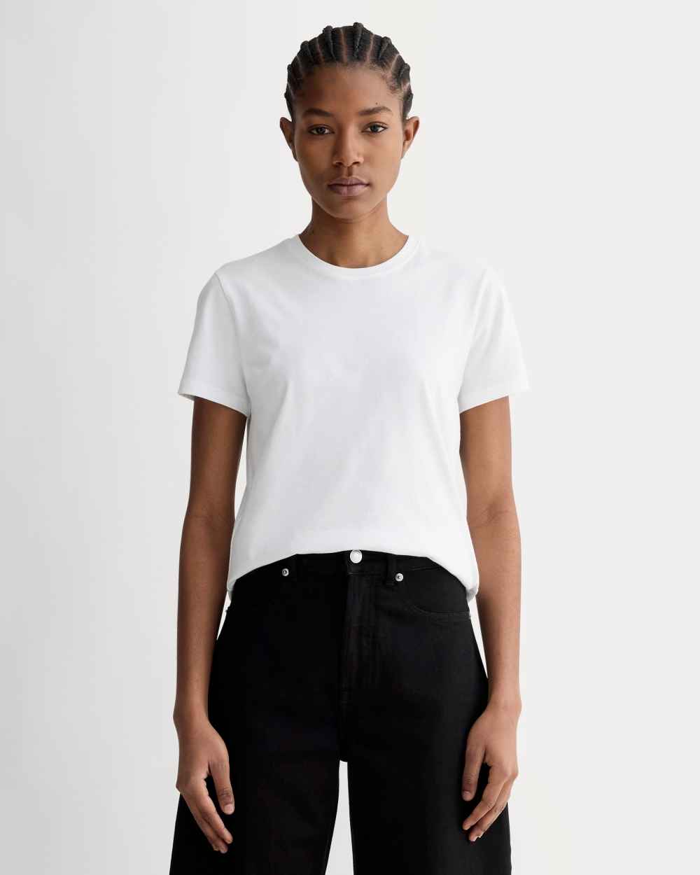 This piece features a boyish cut with a slim, feminine fit, ribbed neckline, and made of premium, mid-weight organic cotton.